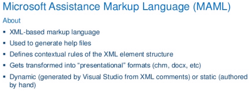 MAML is an XML-based markup language developed by the Microsoft User Assistance Platform team to provide user assistance.