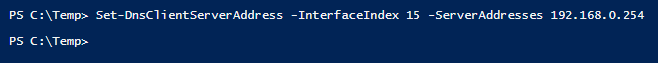 Set-DnsClientServerAddress -InterfaceIndex 12 -ServerAddresses 192.168.0.254