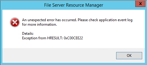 I ran into the following error on several FSRM servers