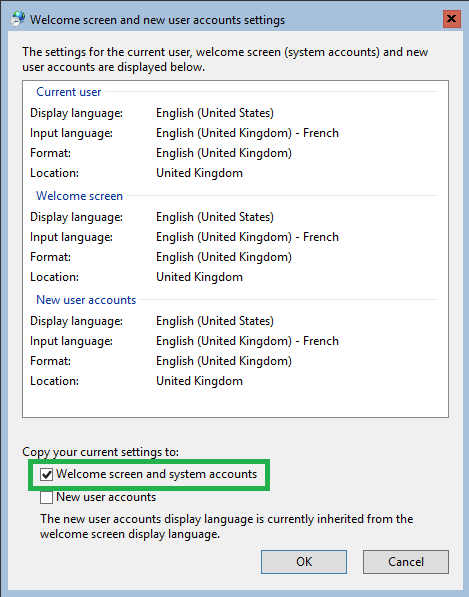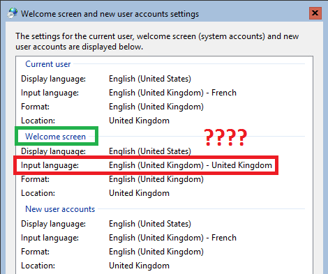 Here we are going to set the input language of the Welcome screen with the same value as the current user (local Administrator).