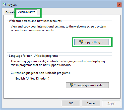 intl.cpl - Click on the Administrative tab